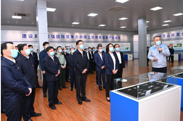 集中學習研討時,大家集體誦讀了習近平總書記關于稀土產業高質量發展的重要論述,以及《中共中央關于黨的百年奮斗重大成就和歷史經驗的決議》節選內容,贛州市領導何琦講述了故事《鄧小平:中東有石油、中國有稀土》。吳忠瓊主持并講話。